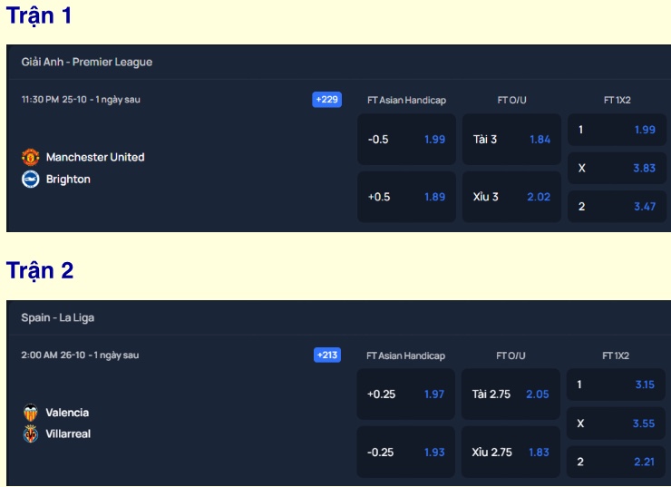 - Over/Under Full Time hoặc